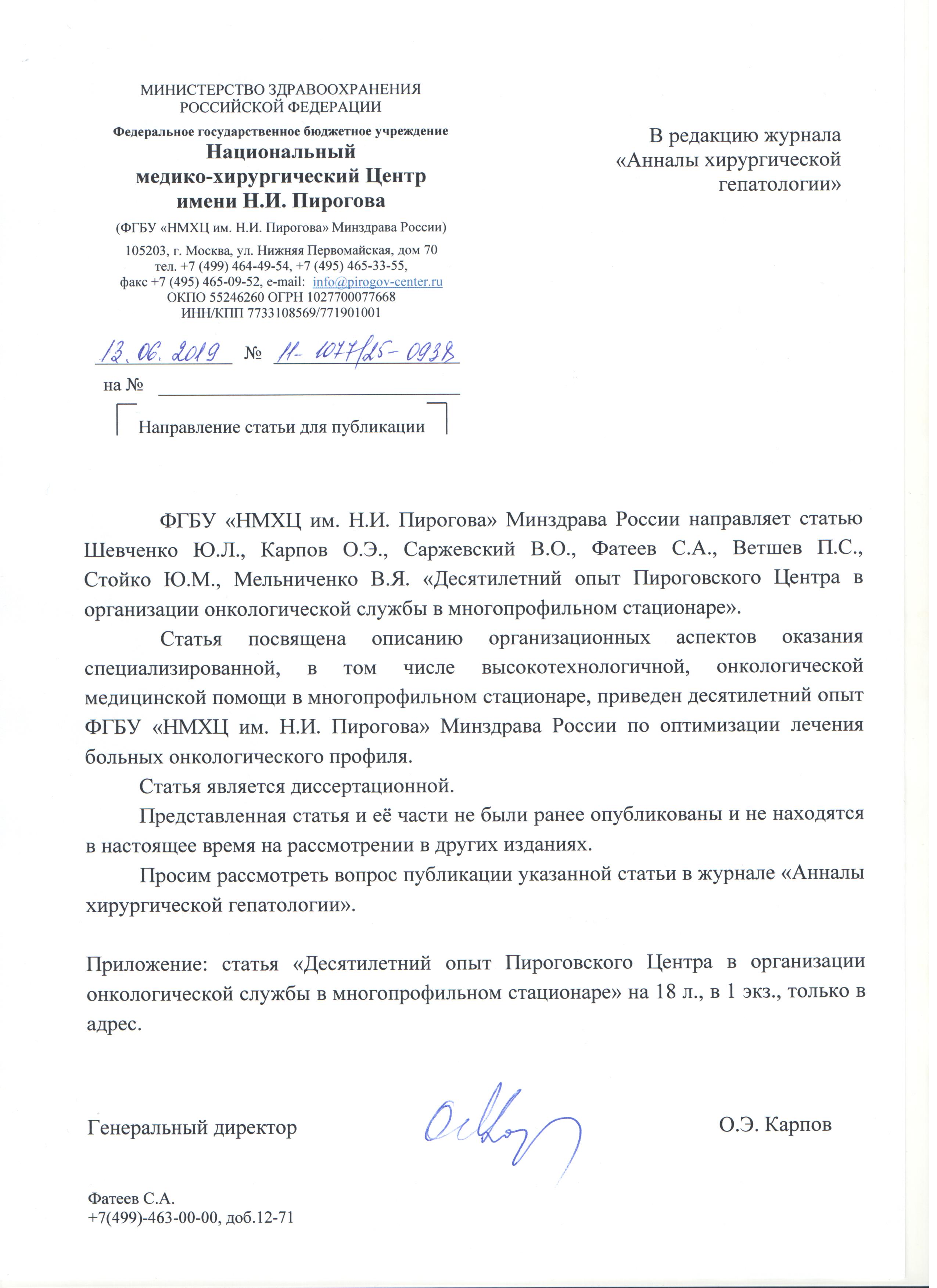 Shevchenko Yu.L., Karpov O.E., Sarzhevskiy V.O., Fateev S.A., Vetshev P.S., Stoyko Yu.M., Melnichenko V.Y. Ten-year experience of the Pirogov Center in the organization of oncological care in a multi-field hospital. Annaly khirurgicheskoy gepatologii = Annals of HPB Surgery. 2019;24(3):115-123. (In Russ.) https://doi.org/10.16931/1995-5464.20193115-123