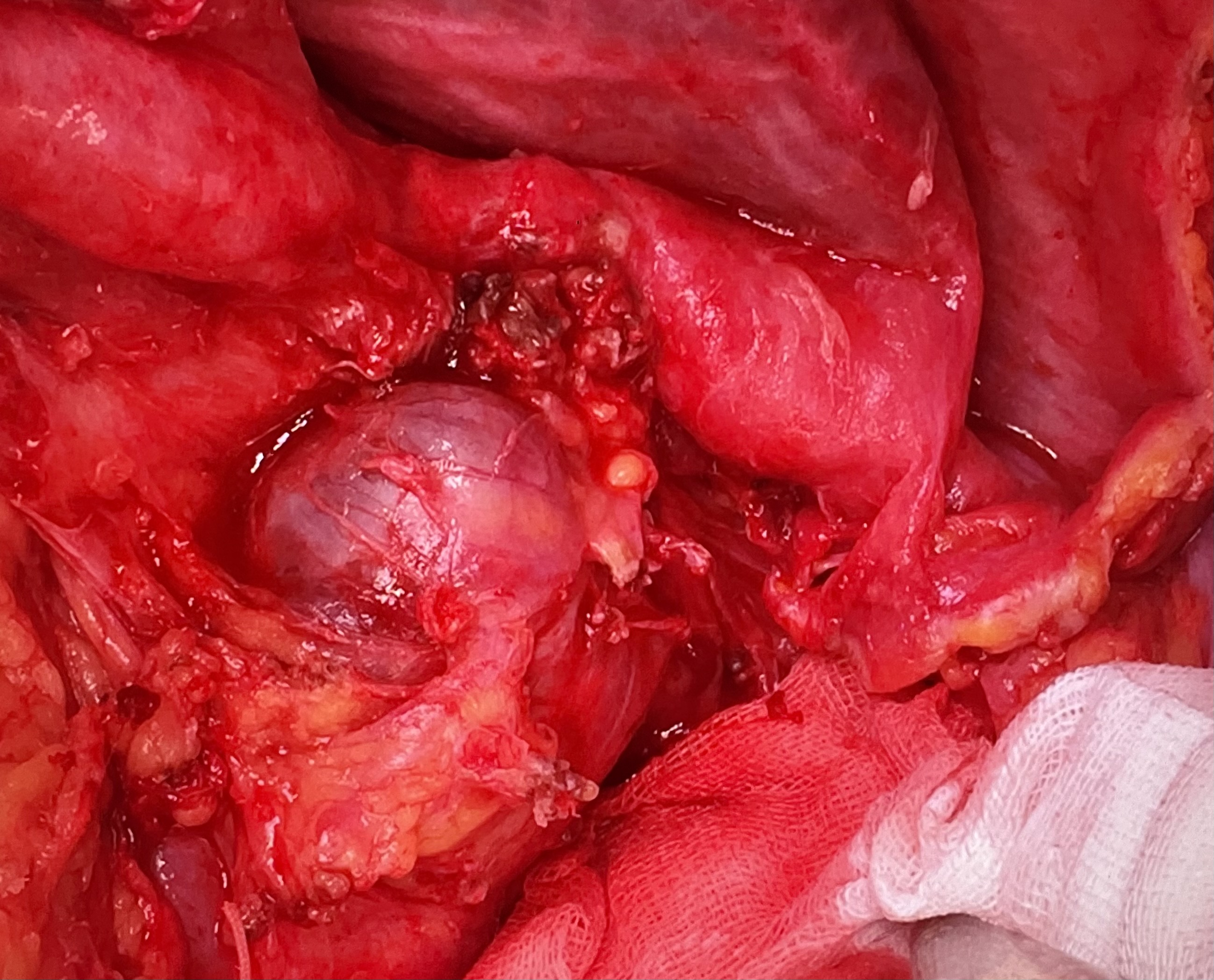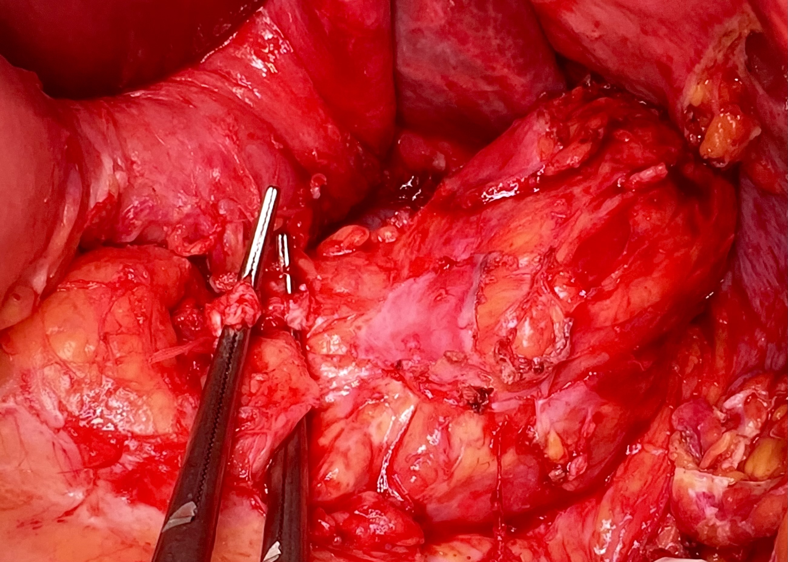 7. Ложе удаленного конгломерата и дистального отдела поджелудочной железы. Обнаружение гипертрофированной добавочной селезенки.