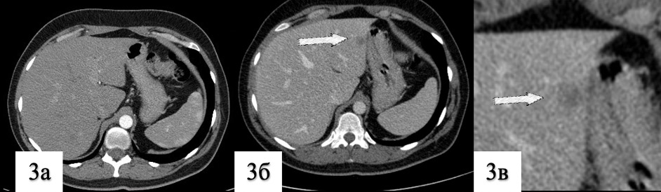 2. Рис.2. Варианты контрастирования очагов в печени в различные фазы контрастирования