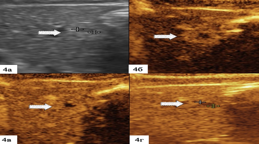 4. Рисунок 4. Мультипараметрическая УЗ картина метастаза КРР в печень