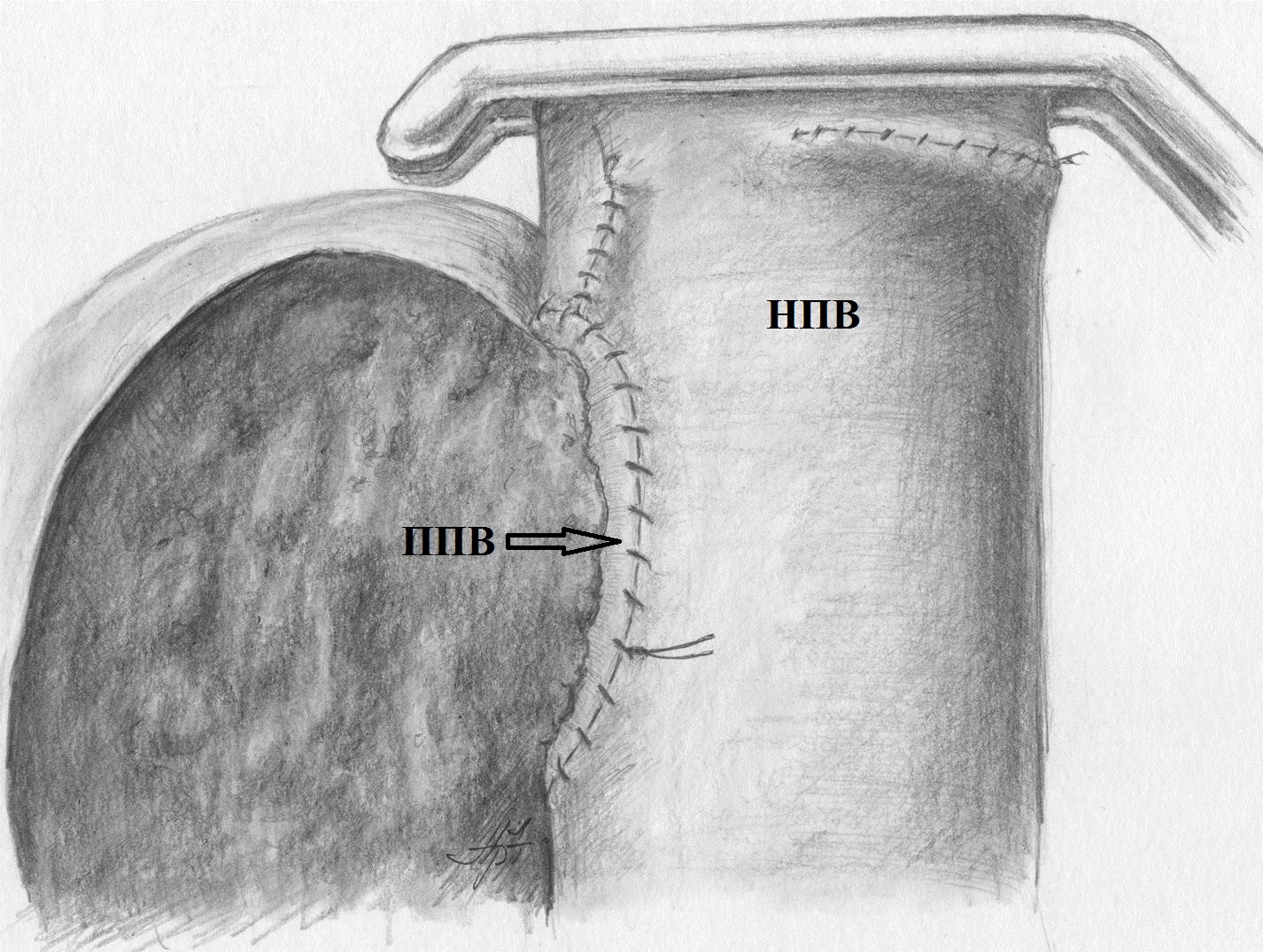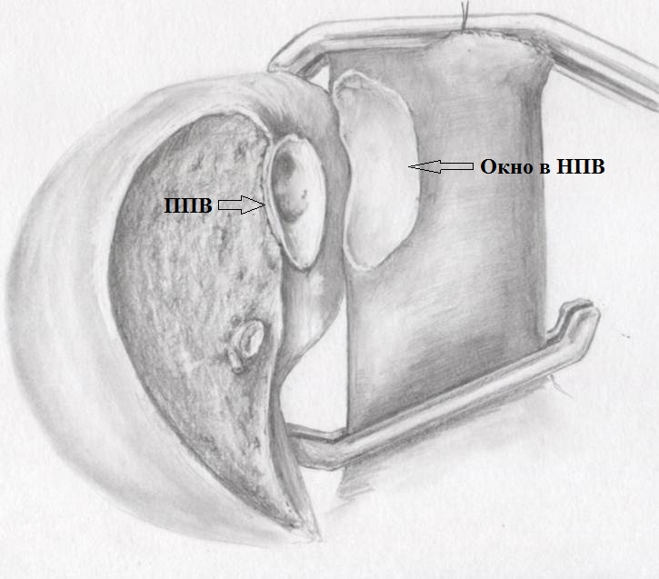 5. Рис. 3a. Объединение устьев ППВ и вены от 7-ого сегмента печени (схема)