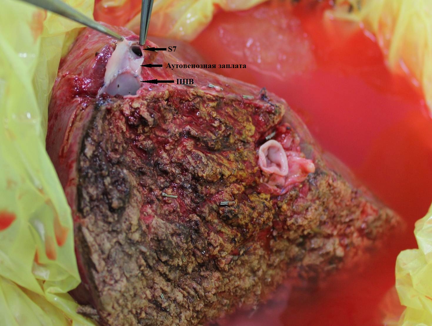 6. Рис. 3б. Объединение устьев ППВ и вены от 7-ого сегмента печени (фото)