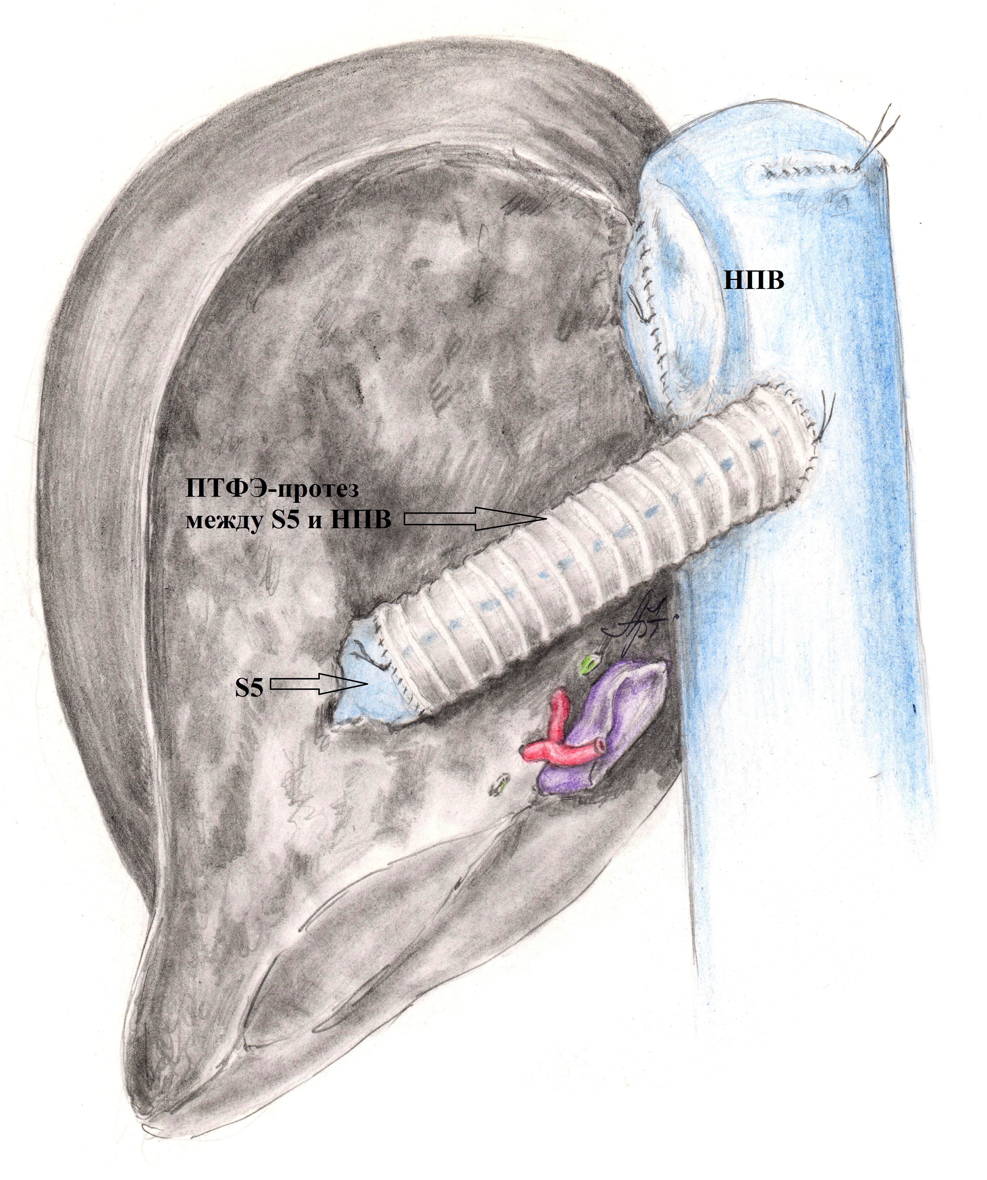 8. Рис. 4б. Гепатикокавальная реконструкция при наличии дополнительной вены от S5 печени