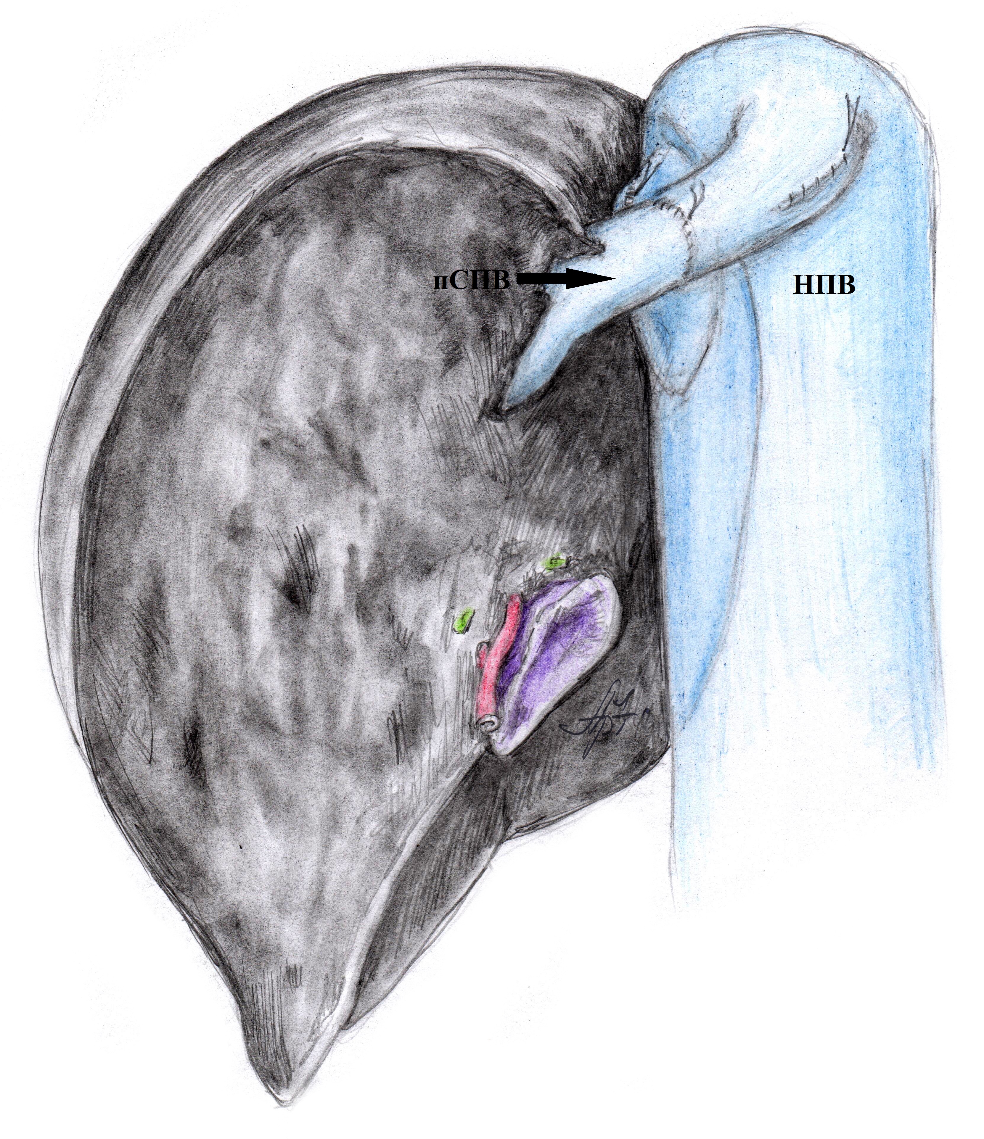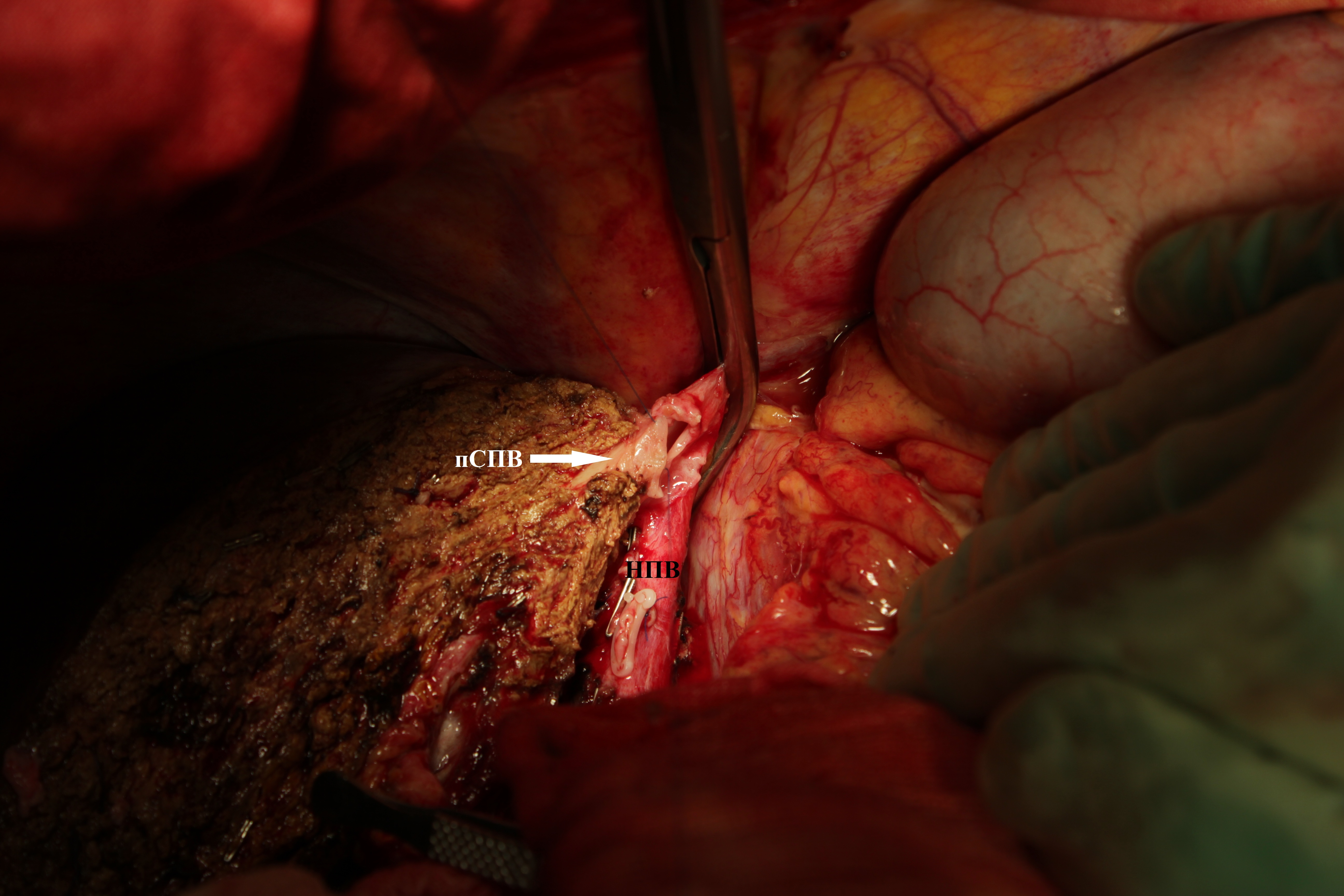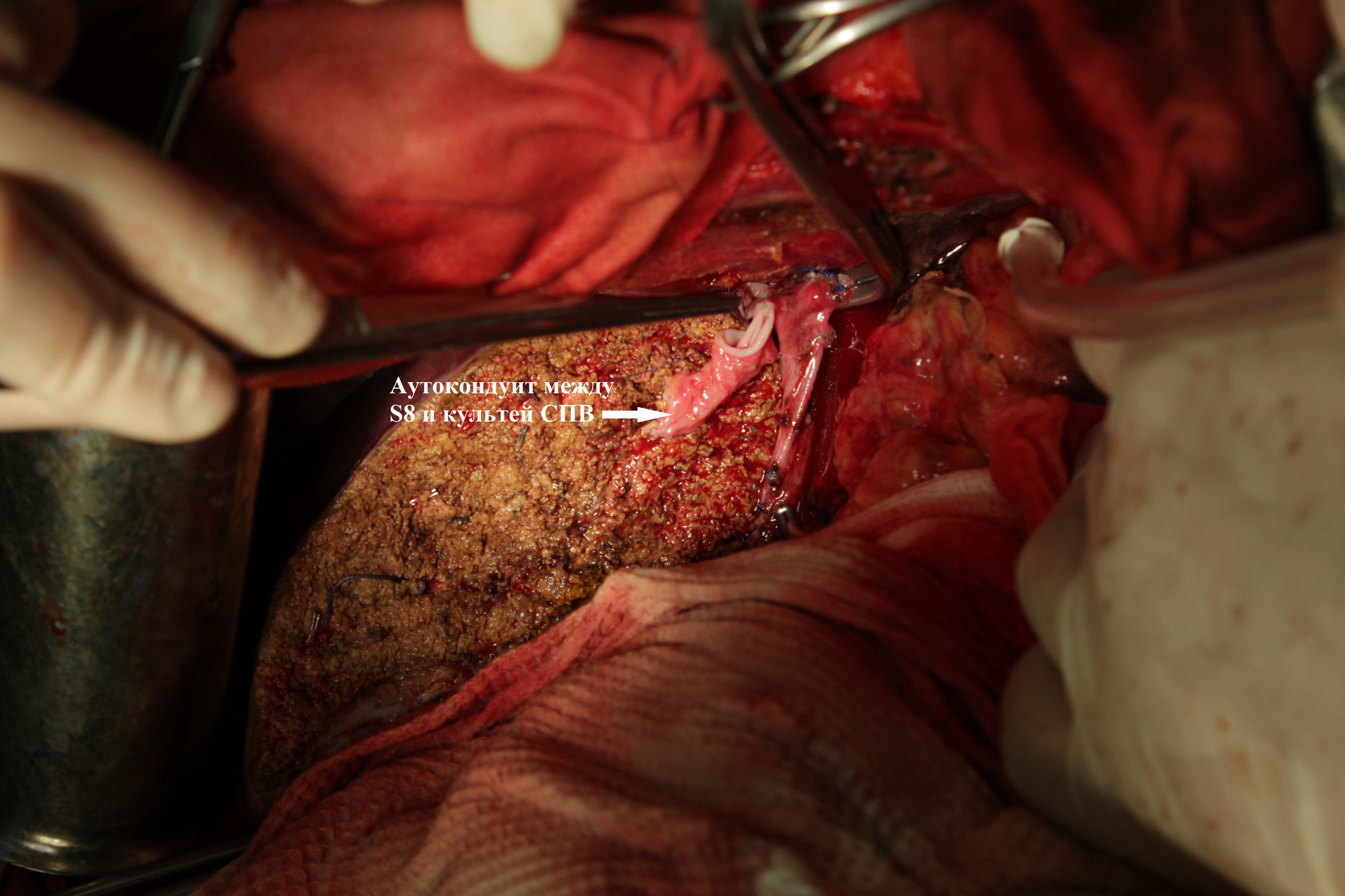 10. Рис. 5б. Гепатикокавальная реконструкция при наличии дополнительной вены от S8 печени (фото)